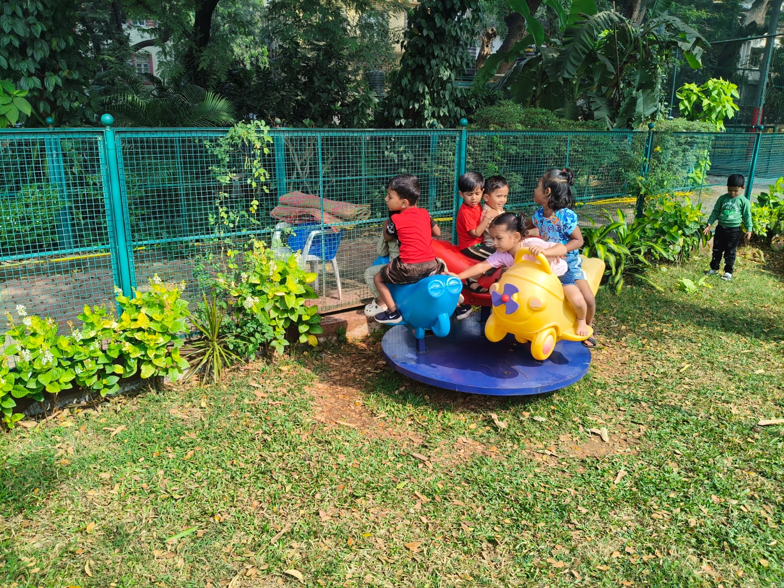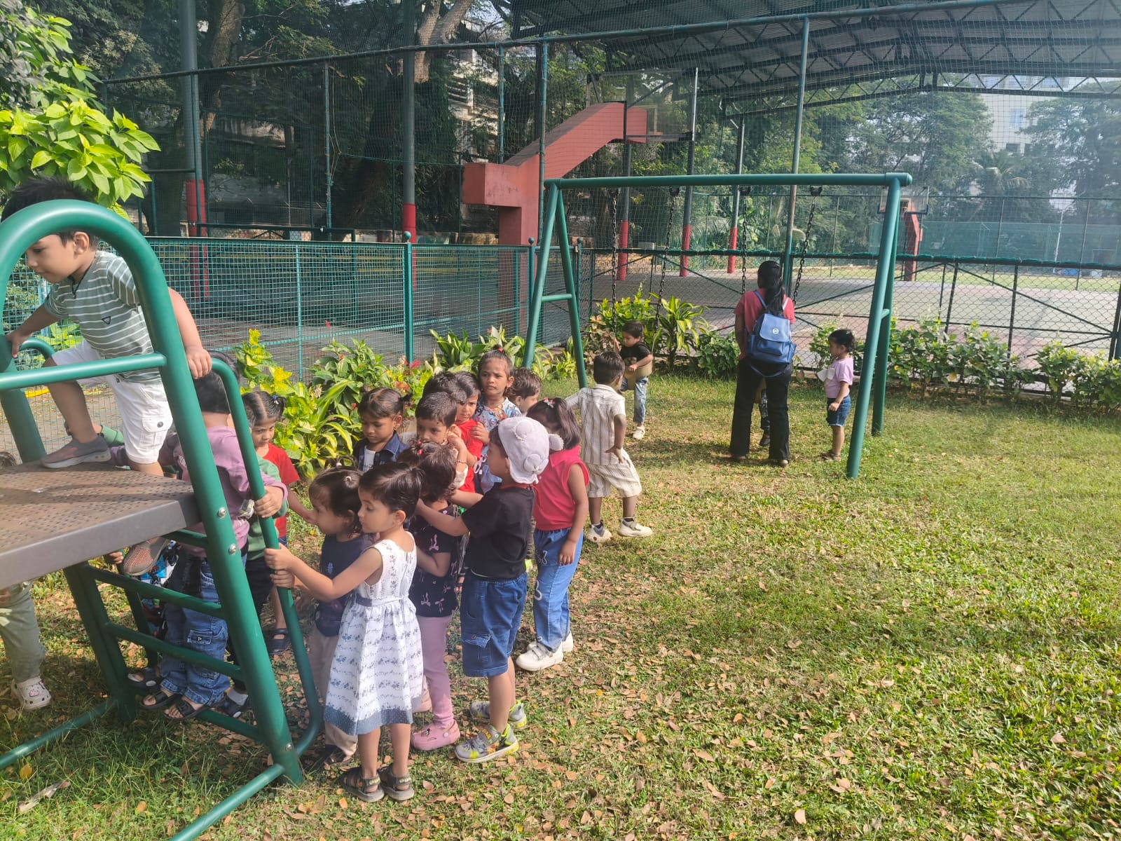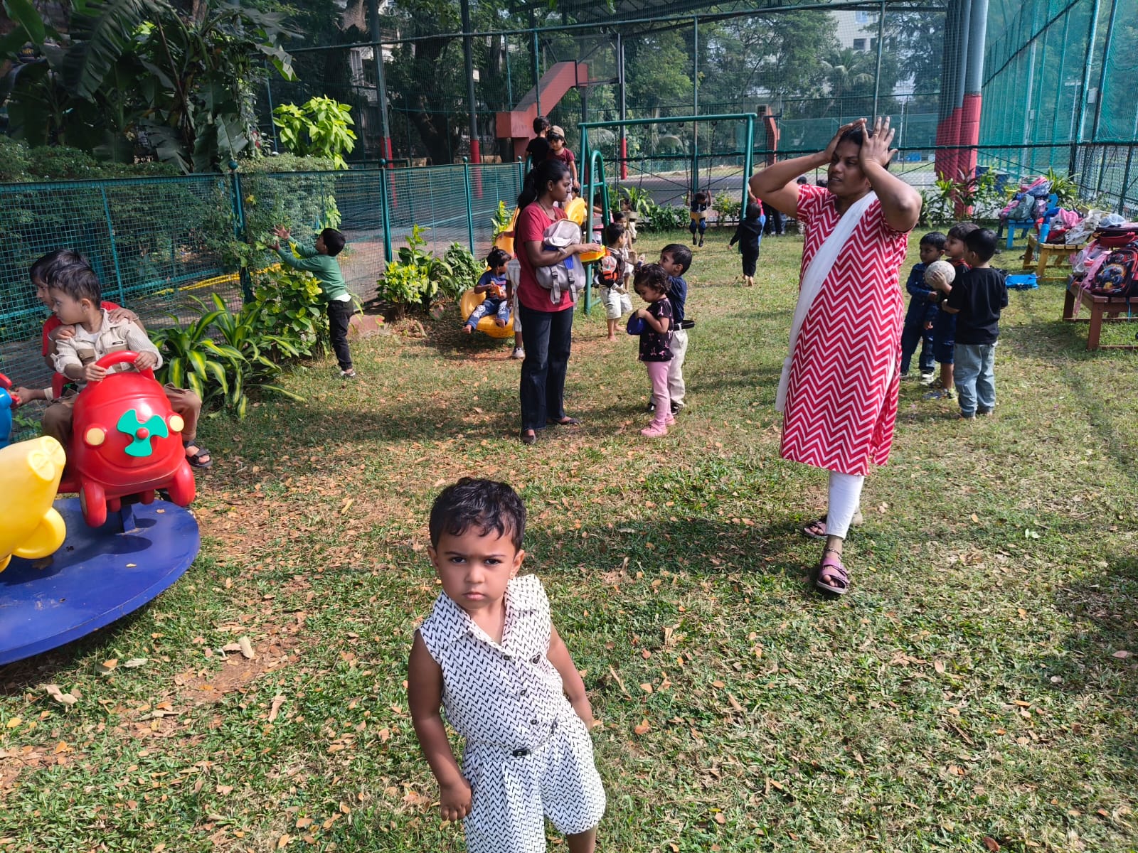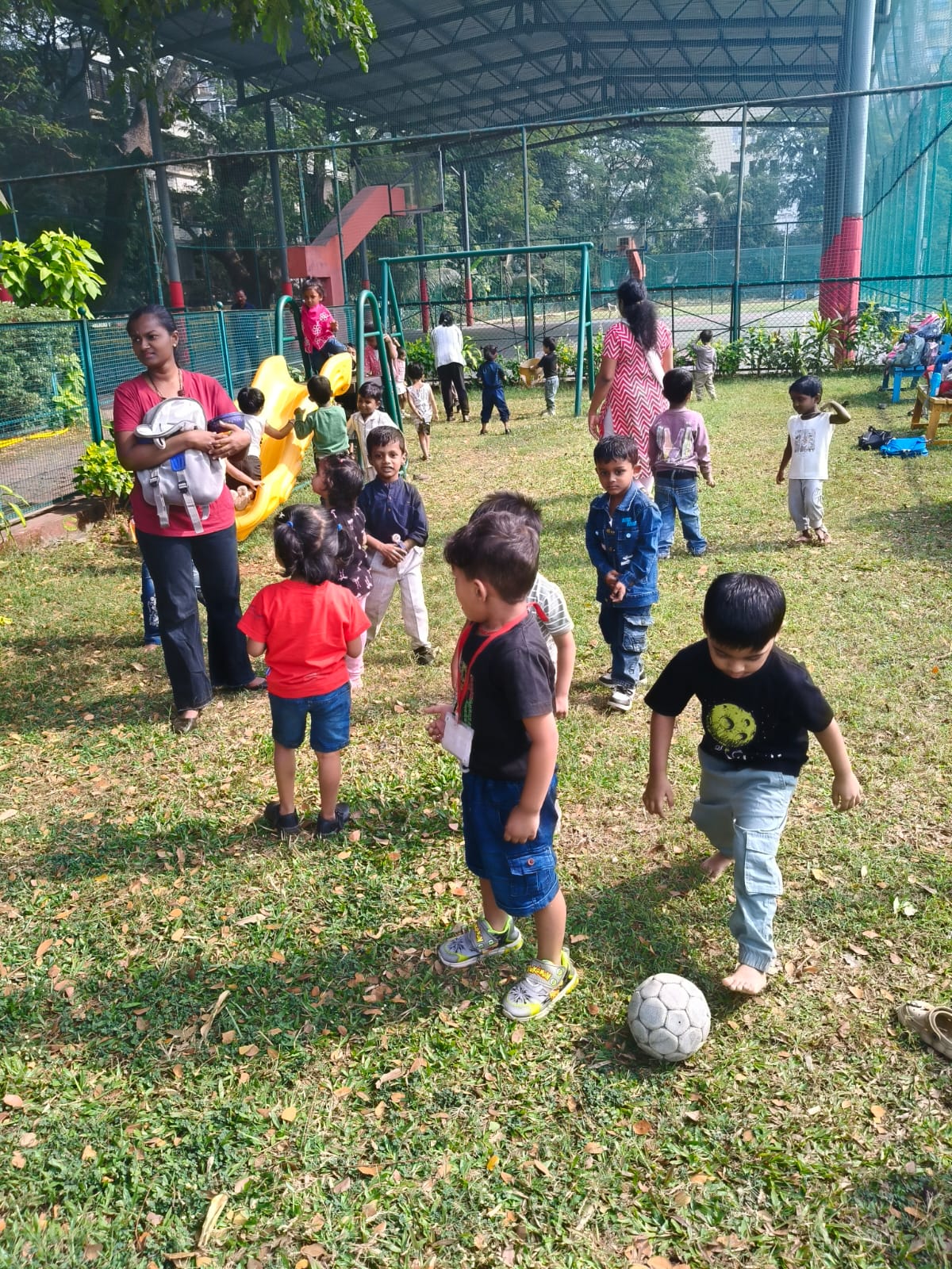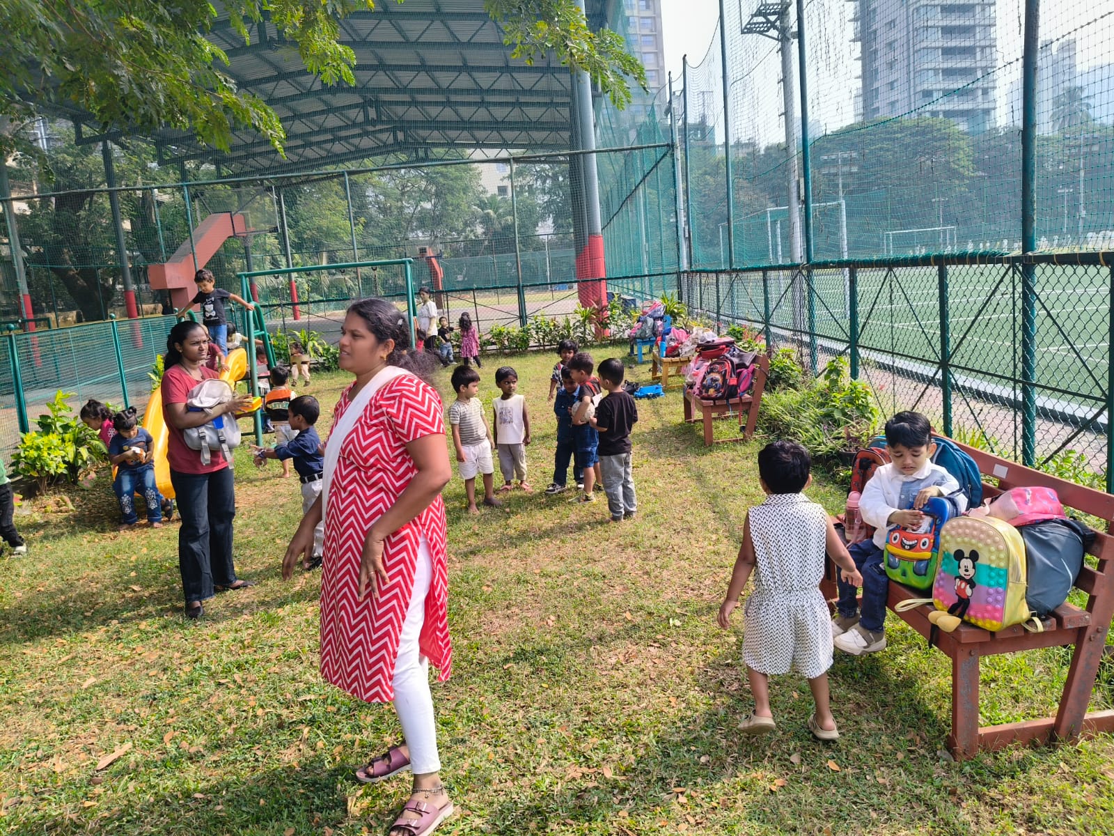 Nursery picnic 6-12-2025 with teachers and Fr Corlis.