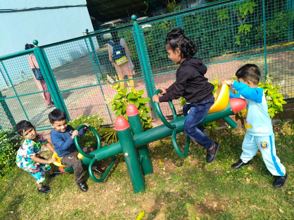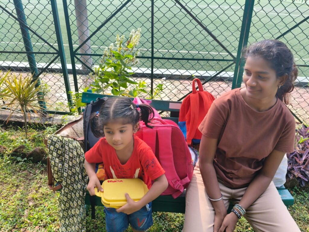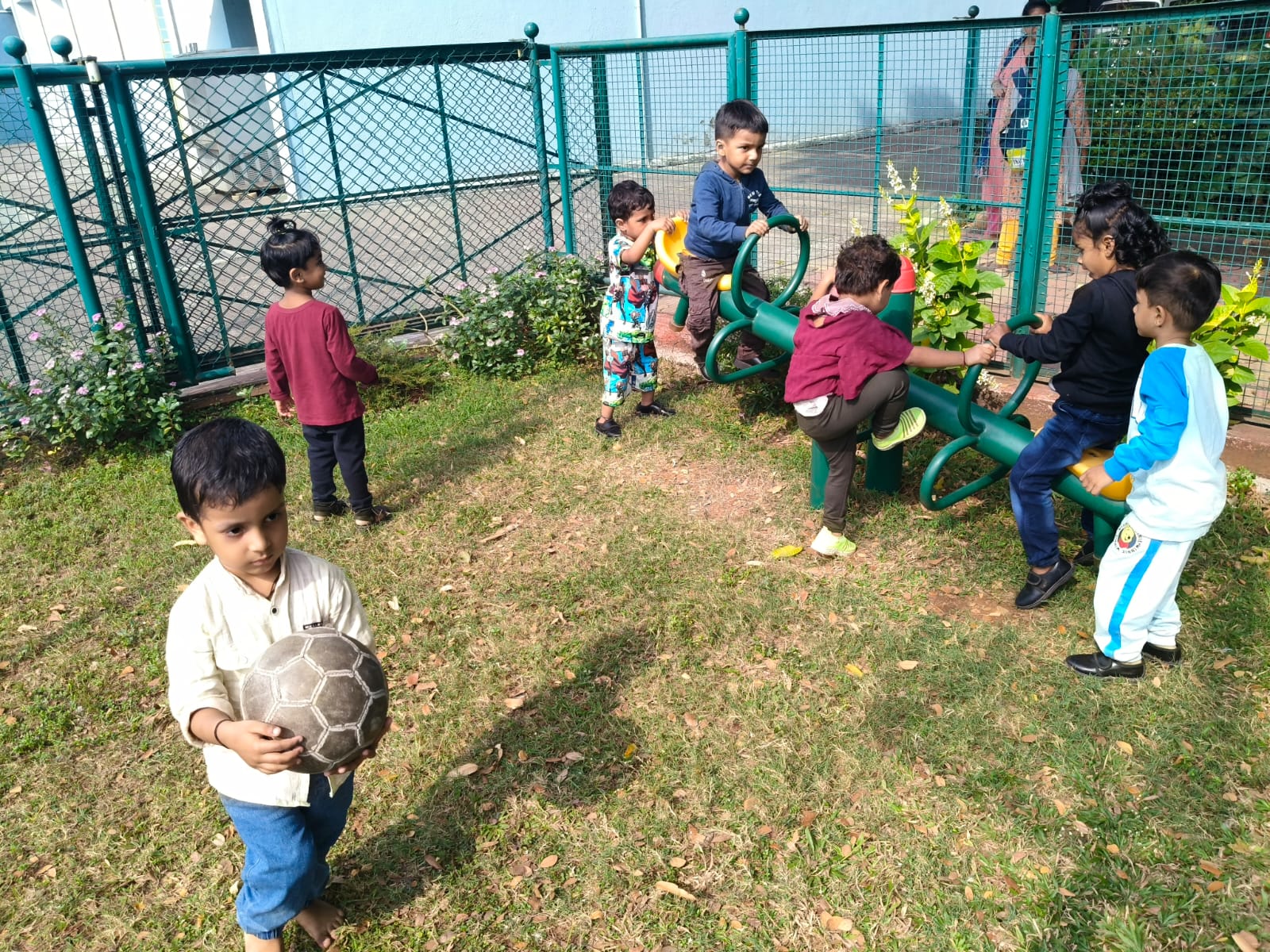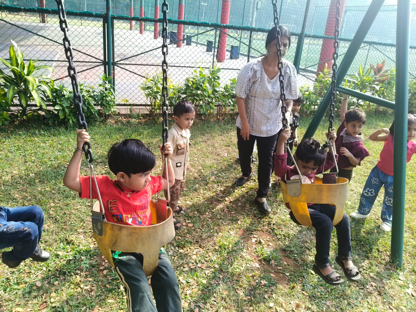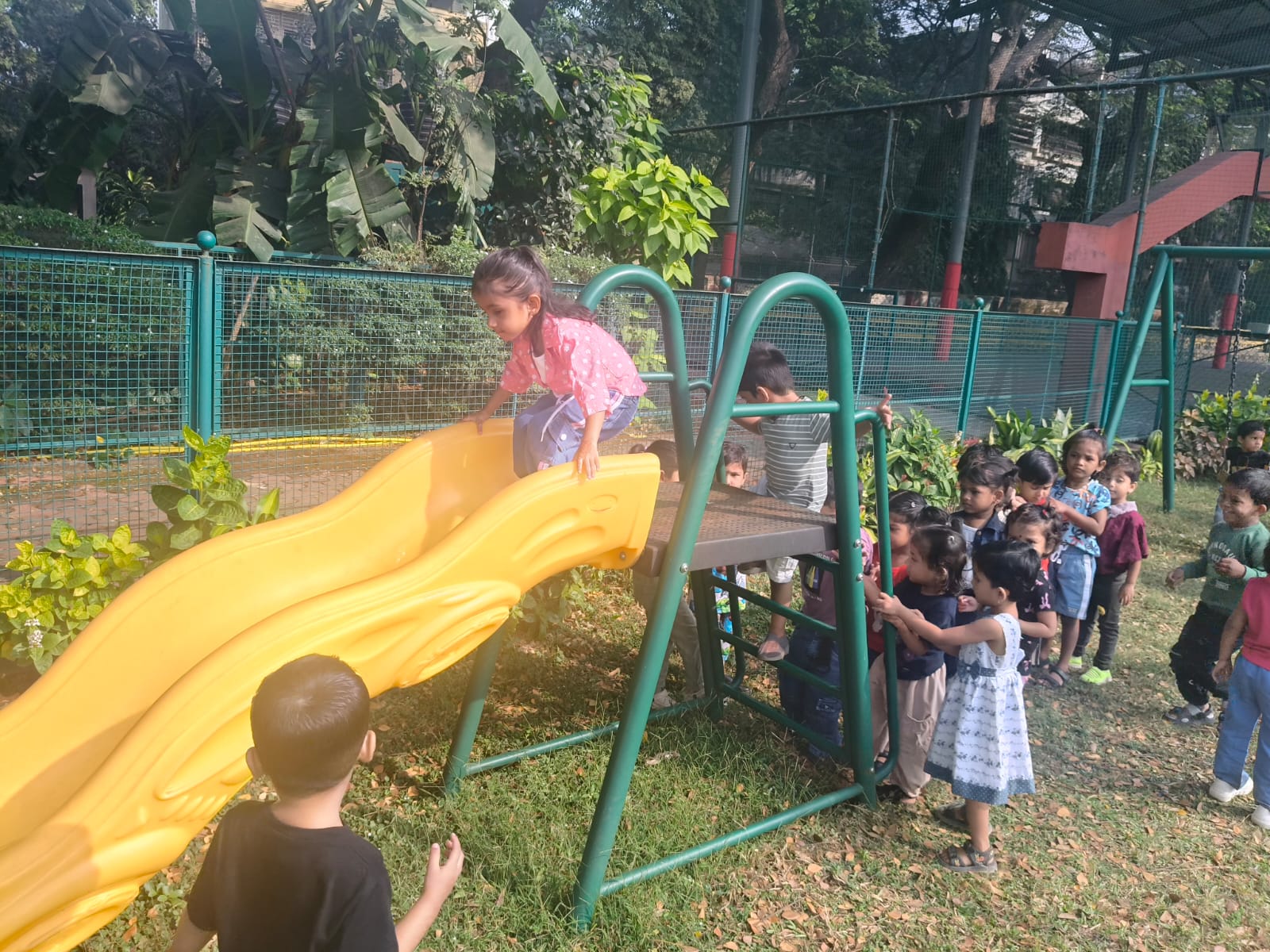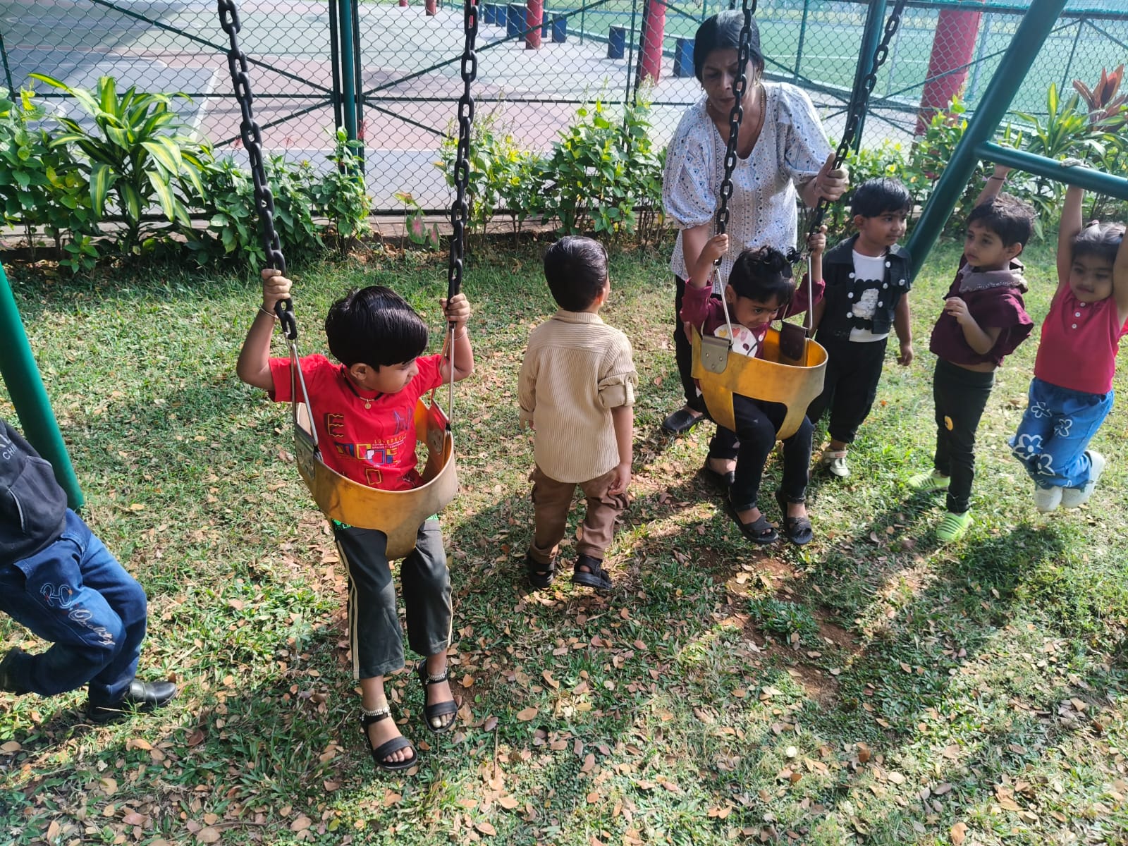 Nursery picnic 6-12-2025 with teachers and Fr Corlis.